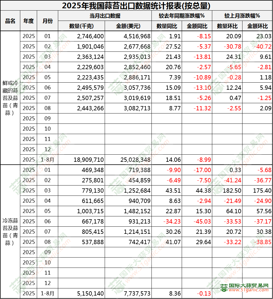 2025年8月蒜苔出口數(shù)據(jù)(按總量)