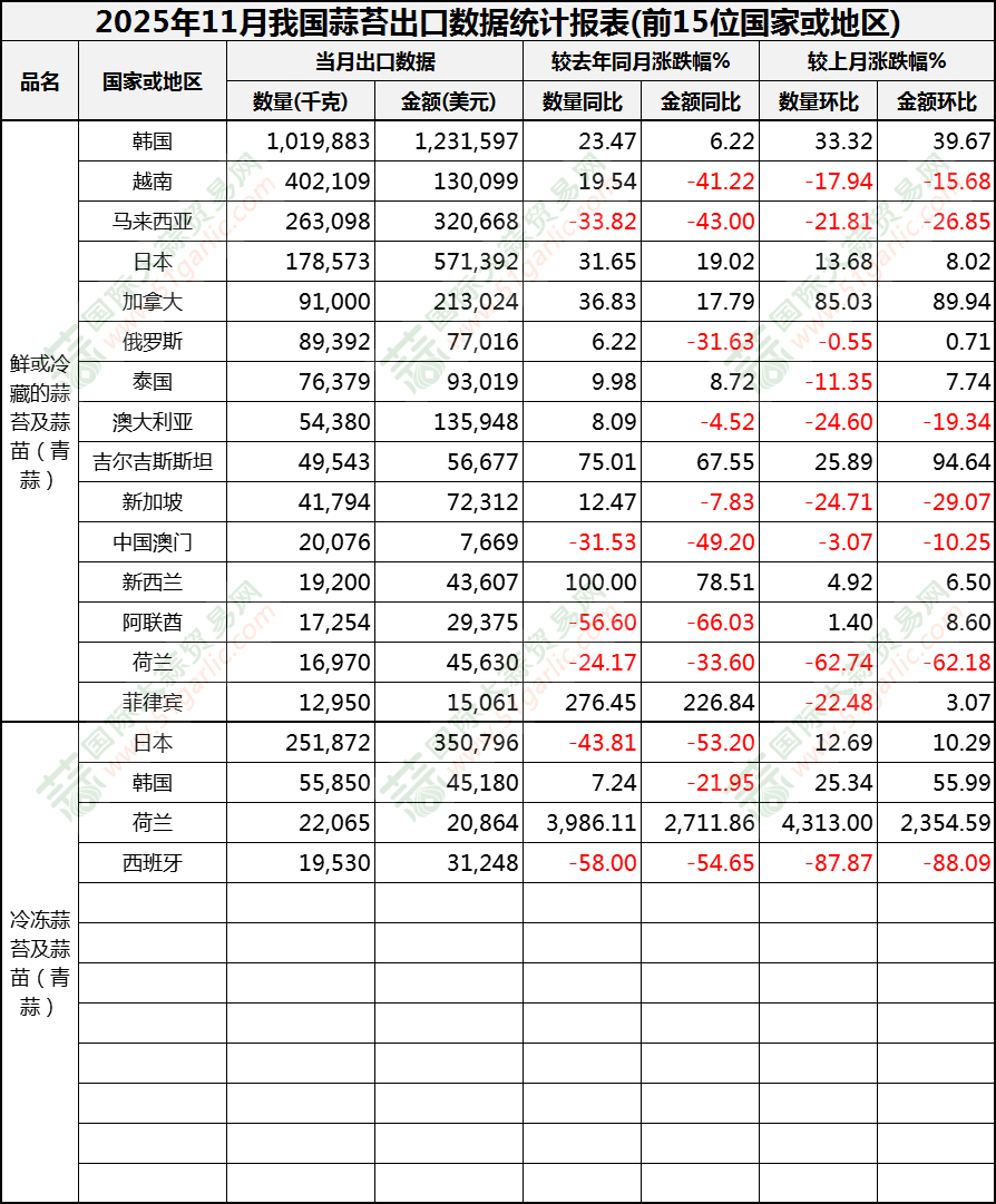 2025年11月蒜苔出口數(shù)據(jù)(按國家)