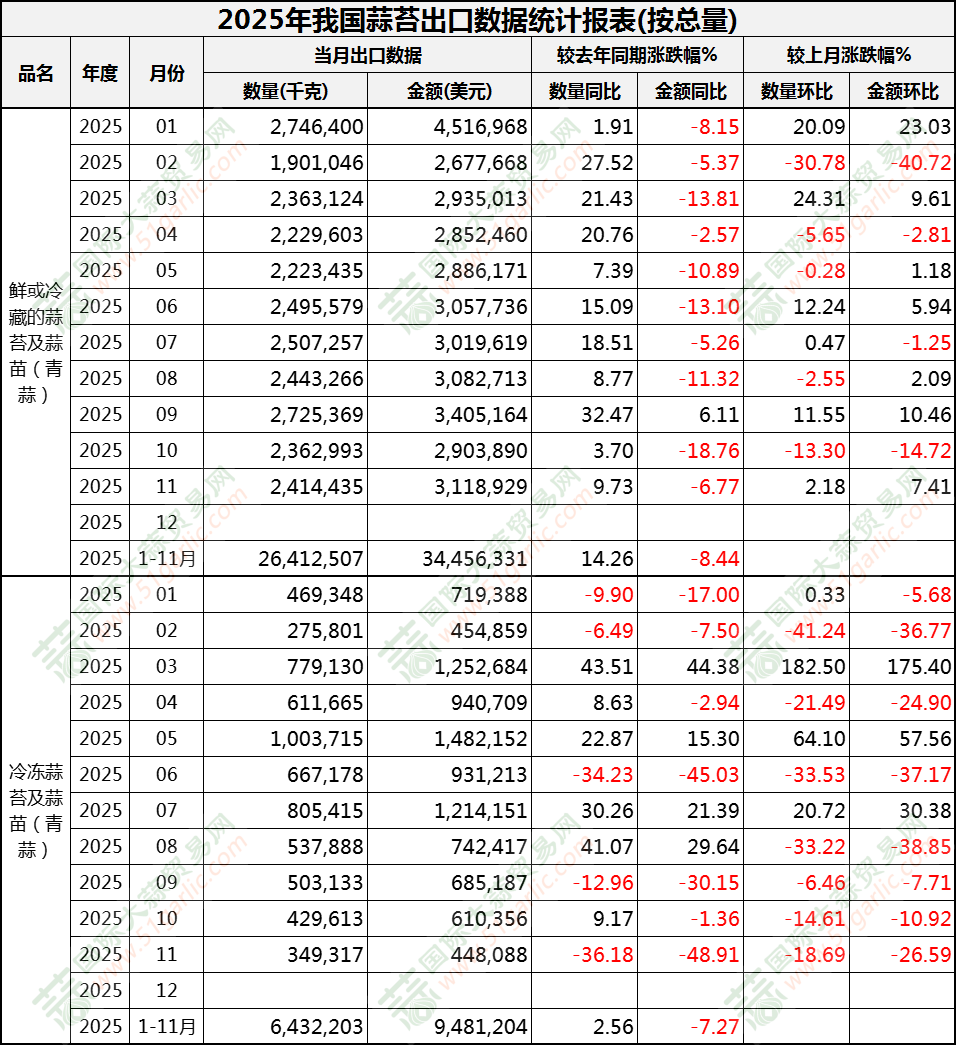 2025年11月蒜苔出口數(shù)據(jù)(按總量)