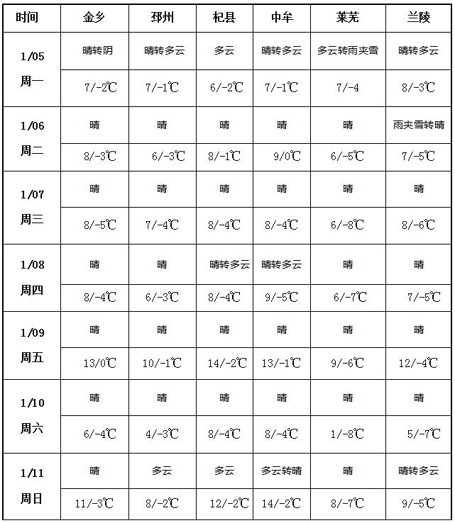 本周(1月5日-11日),大蒜主產(chǎn)區(qū)降水稀少,僅1月5日萊蕪出現(xiàn)雨夾雪天氣,其余時段多為晴好或多云天氣。周內(nèi)產(chǎn)區(qū)氣溫整體呈回升態(tài)勢,1月9日后部分產(chǎn)區(qū)日間氣溫回升尤為明顯(如中牟升至13℃、杞縣達(dá)14℃),但夜間低溫仍持續(xù),晝夜溫差有所加大。