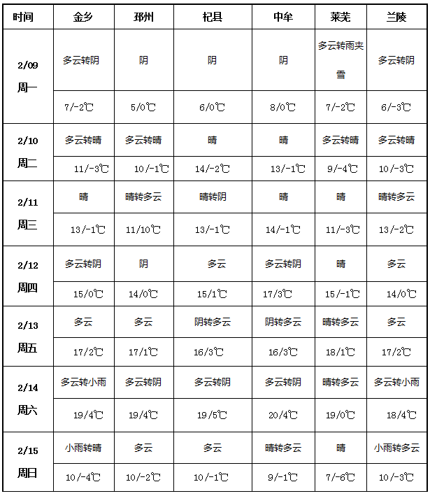 未來一周(2月9日至15日),國內(nèi)大蒜主產(chǎn)區(qū)天氣呈波動變化,氣溫整體呈 “先升后降” 走勢,降水過程較為零散。前期萊蕪出現(xiàn)雨夾雪,隨后各地轉(zhuǎn)晴升溫,氣溫逐步攀升至 14-18℃的階段性高點;后期金鄉(xiāng)、蘭陵等地出現(xiàn)小雨,之后氣溫明顯回落,最低溫跌至 - 6℃到 - 1℃,天氣由暖轉(zhuǎn)冷。其余時段以晴好、多云為主,無大范圍降水。
