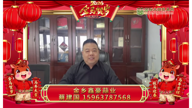 金蛇辭舊歲,駿馬報(bào)新春!值此新春佳節(jié)來(lái)臨之際,國(guó)際大蒜貿(mào)易網(wǎng)(www.taracollegeofeducation.com)攜大蒜知名企業(yè)及行業(yè)大咖,給全國(guó)的蒜界同仁拜年啦!過(guò)去一年,我們風(fēng)雨同舟,見(jiàn)證了行情的起伏;新的一年,愿我們繼續(xù)攜手,把握市場(chǎng)脈搏,洞察財(cái)富先機(jī)。祝您在2026 年事業(yè)如駿馬奔騰,勢(shì)不可擋;財(cái)運(yùn)如春水奔流,源源不斷!