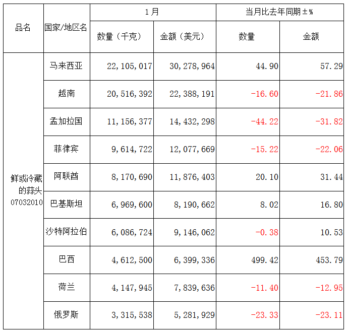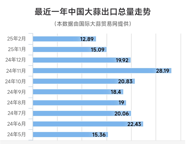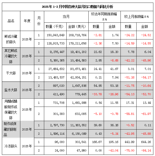 2025年1-2月大蒜出口同環(huán)比下降