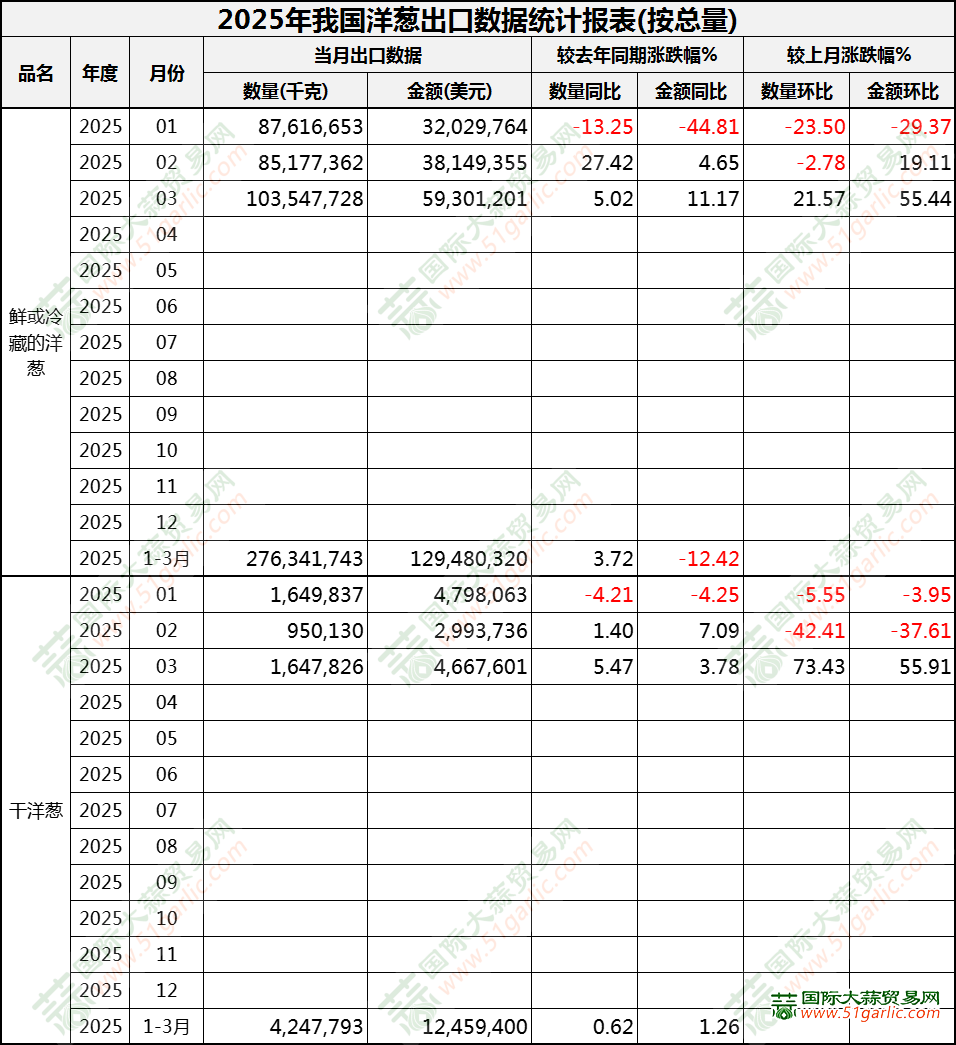 2025年3月洋蔥出口數(shù)據(jù)(按總量)
