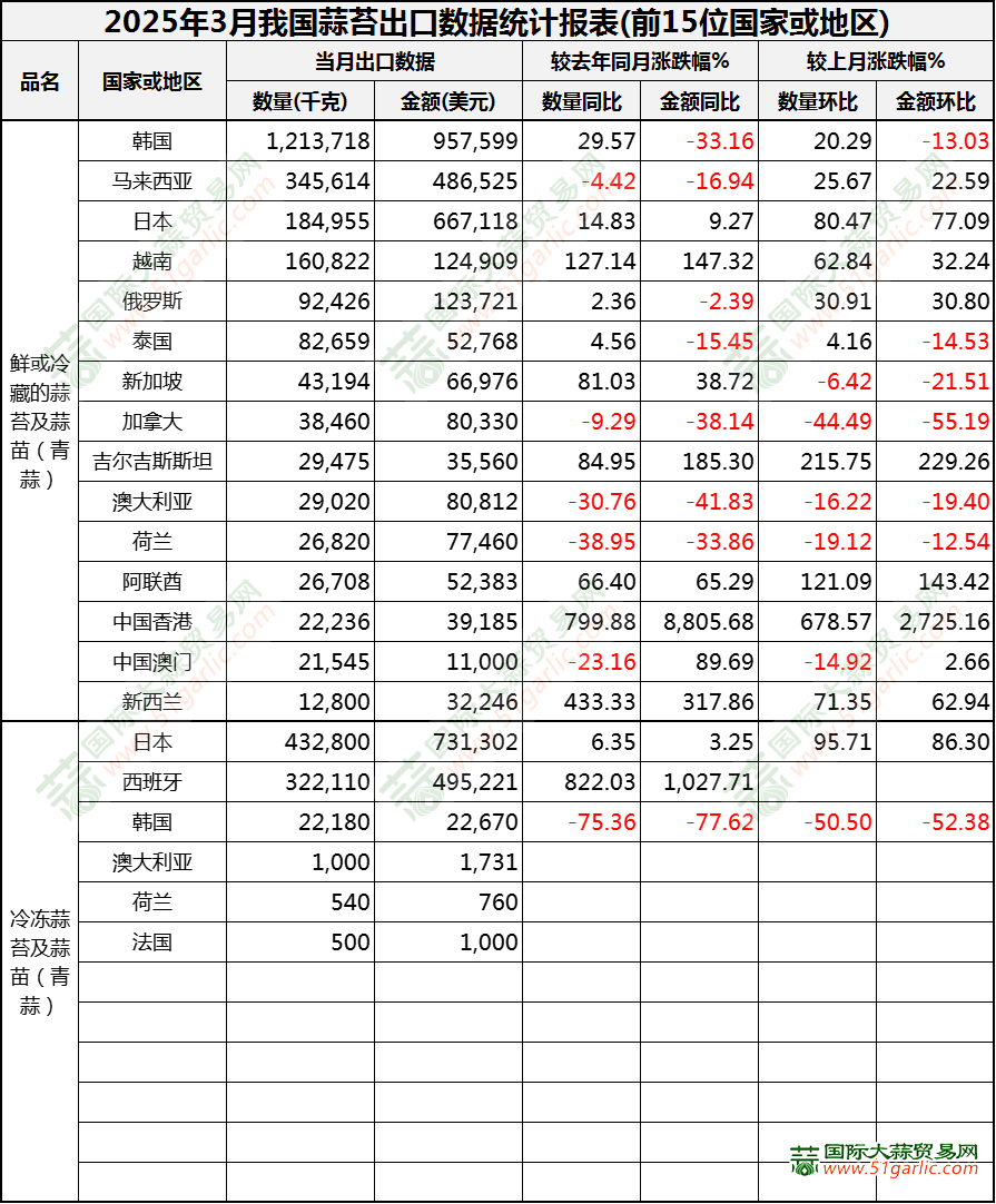 2025年3月蒜苔出口數(shù)據(jù)(按國家)
