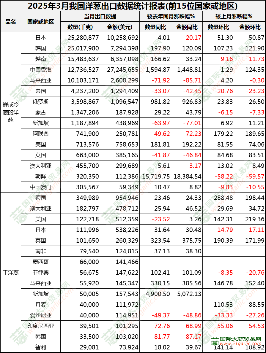2025年3月洋蔥出口數(shù)據(jù)(按國家)