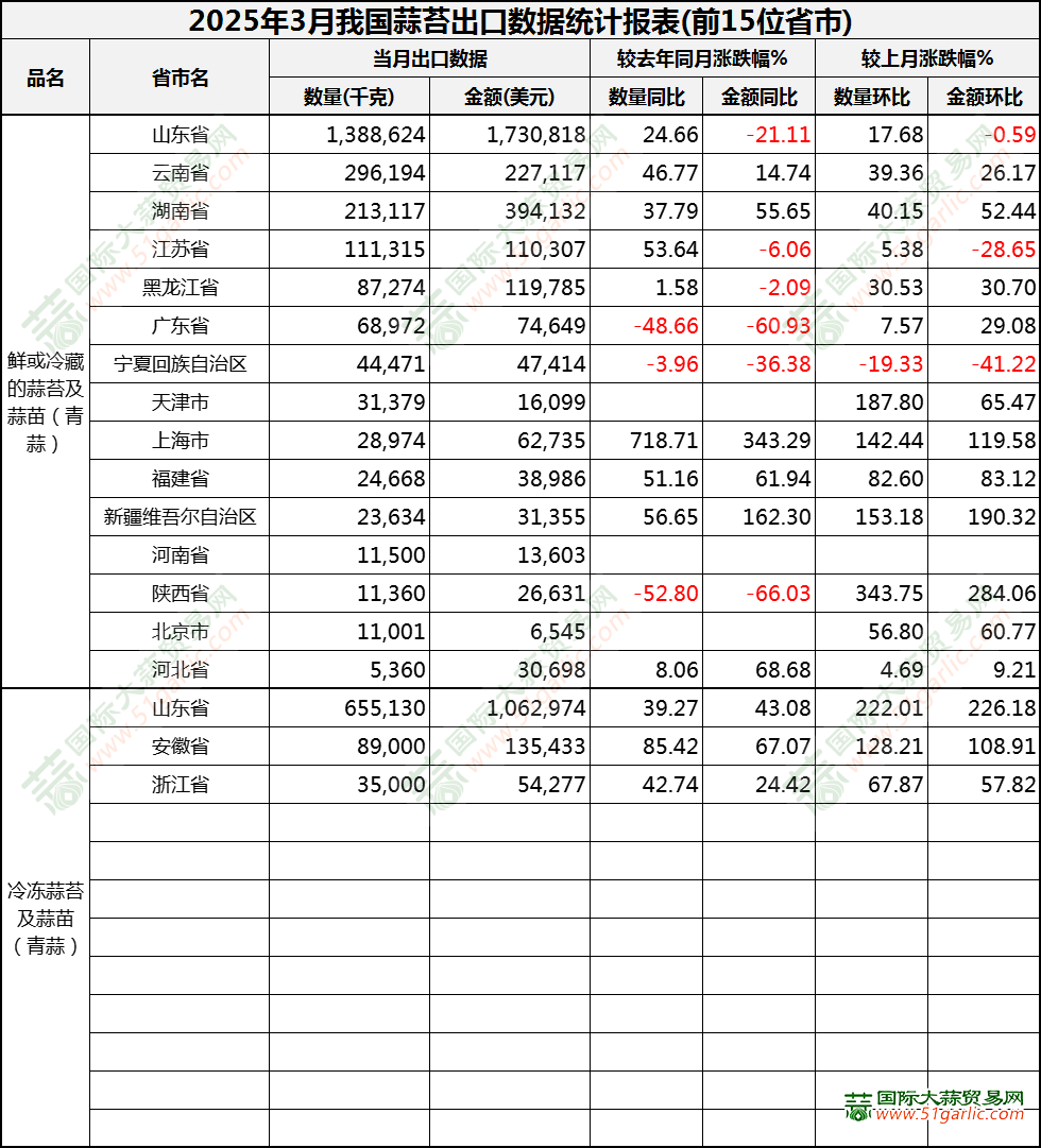 2025年3月蒜苔出口數(shù)據(jù)(按省市)