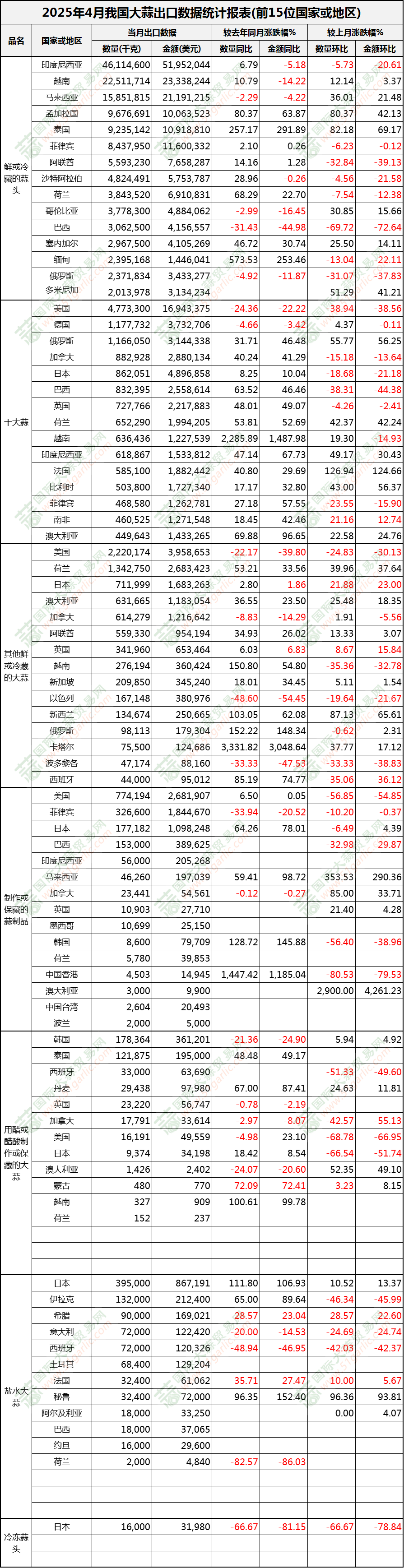 2025年4月大蒜出口數(shù)據(jù)(按國家)