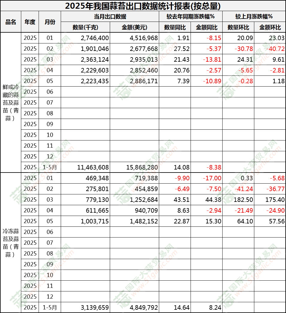 2025年5月蒜苔出口數(shù)據(jù)(按總量)