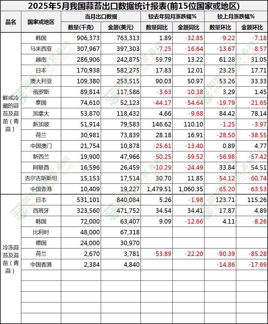 2025年5月蒜苔出口數(shù)據(jù)(按國家)