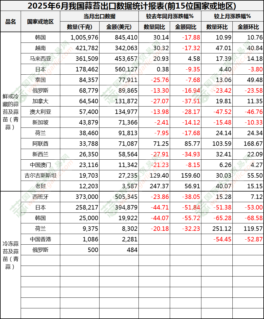 2025年6月蒜苔出口數(shù)據(jù)(按國家)