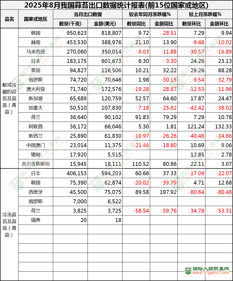 2025年8月蒜苔出口數(shù)據(jù)(按國(guó)家)