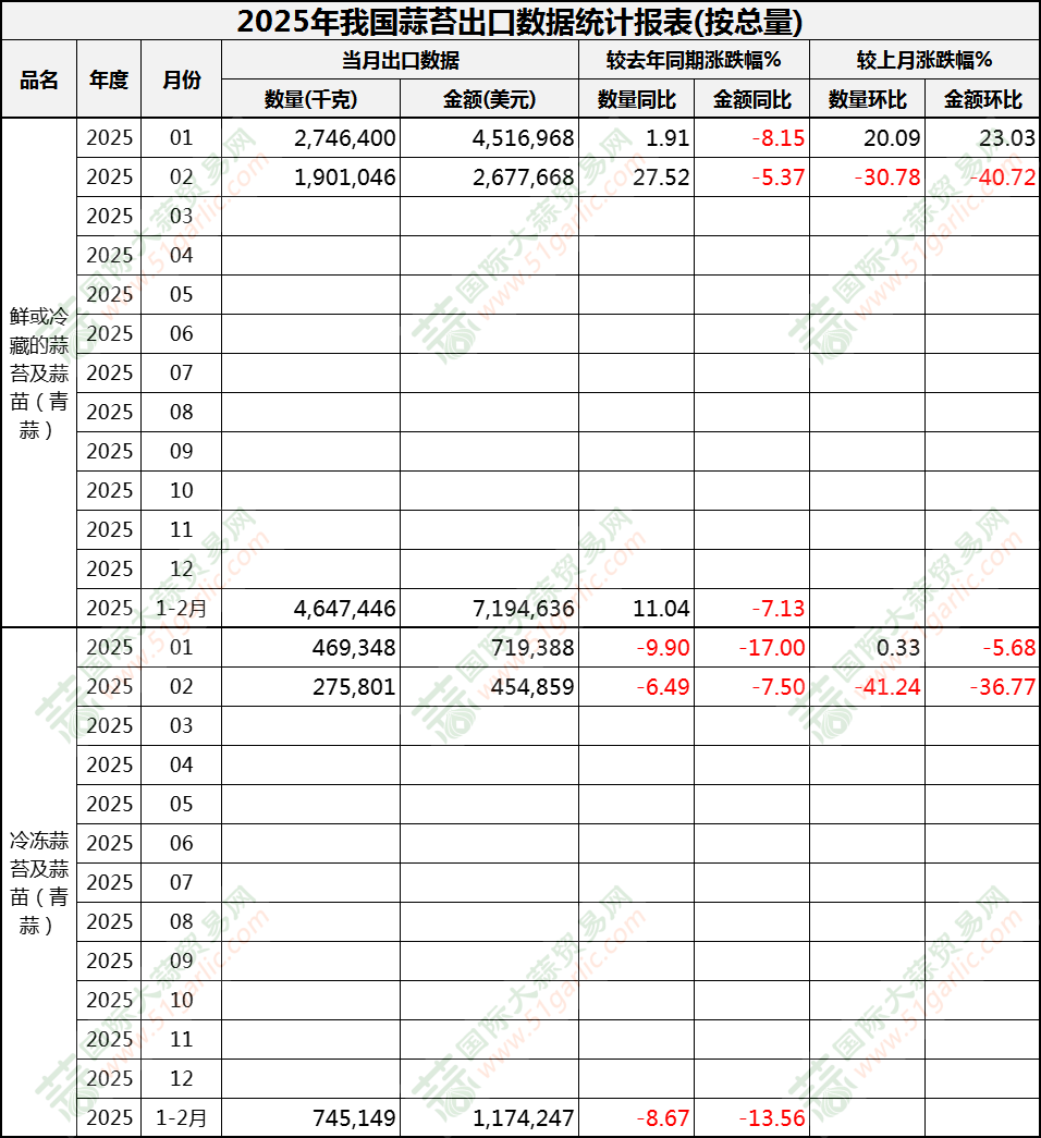 2025年1-2月蒜苔出口數(shù)據(jù)(按總量)