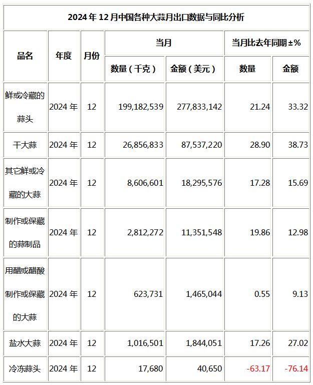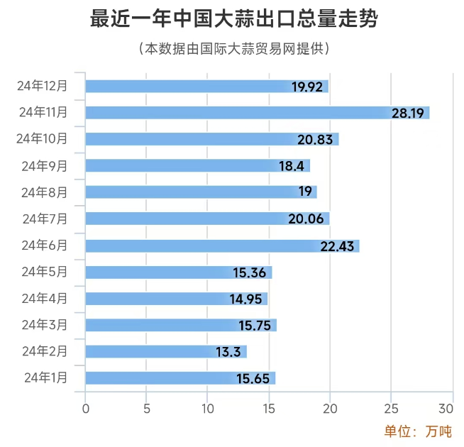 2024年大蒜出口總量創(chuàng)歷史新高
