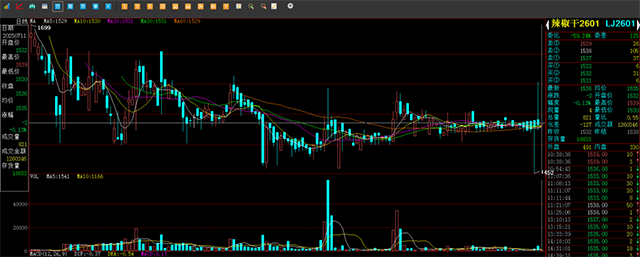 當(dāng)現(xiàn)貨市場(chǎng)還陷在僵局中,電子盤的反應(yīng)卻總能快一步,華夏國(guó)際辣椒干電子盤的LJ2601合約在七月上旬就有了動(dòng)作:盤面跌至1452點(diǎn),精準(zhǔn)釋放了市場(chǎng)對(duì)“南澇北旱”的擔(dān)憂。