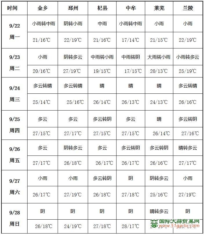 大蒜主產(chǎn)區(qū)天氣