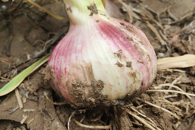 (3)蒜蛆:是大蒜生長中后期危害最嚴(yán)重的一種地下害蟲,主要危害大蒜的鱗莖,幼蟲聚集在鱗莖上蛀食,不僅影響鱗莖的膨大,還容易感染軟腐病等病害,造成鱗莖發(fā)生腐爛,失去食用價值和商品價值,從而導(dǎo)致嚴(yán)重減產(chǎn)。